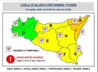 Il maltempo non lascia la Sicilia e la primavera tarda ad arrivare. Il dipartimento di protezione civile ha diramato per la giornata di domani 17 marzo l’avviso di allerta gialla. Per la giornata di domani sono previsti temporali con forti raffiche di vento e di burrasca, locali grandinate anche nella provincia di Agrigento.