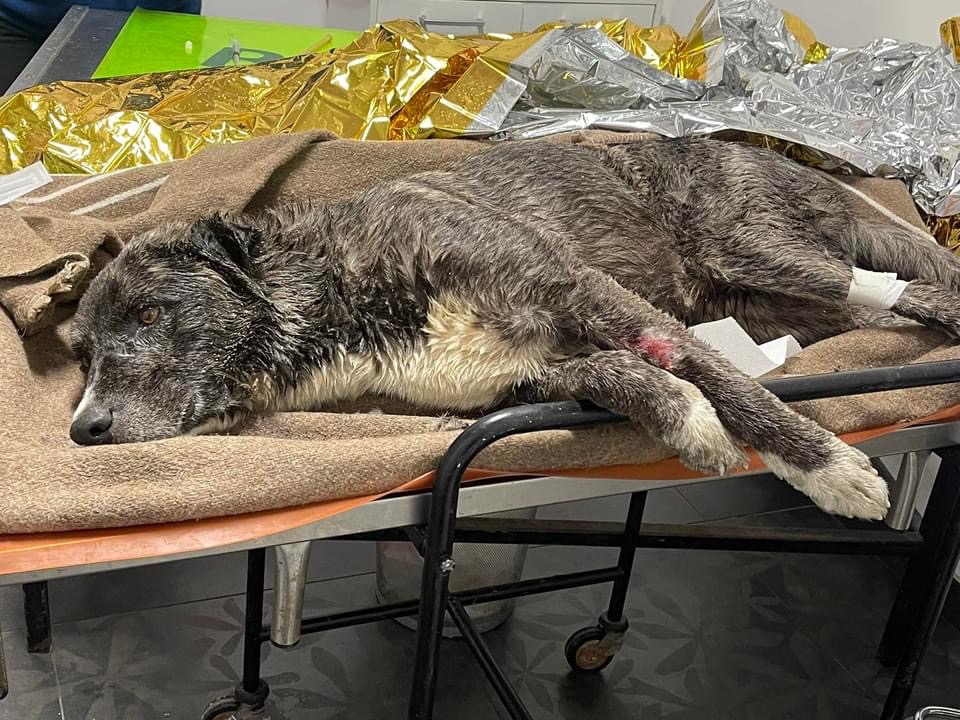 Il cane, in ipotermia e sotto shock, è stato trasferito presso la clinica l’Arca di Noè