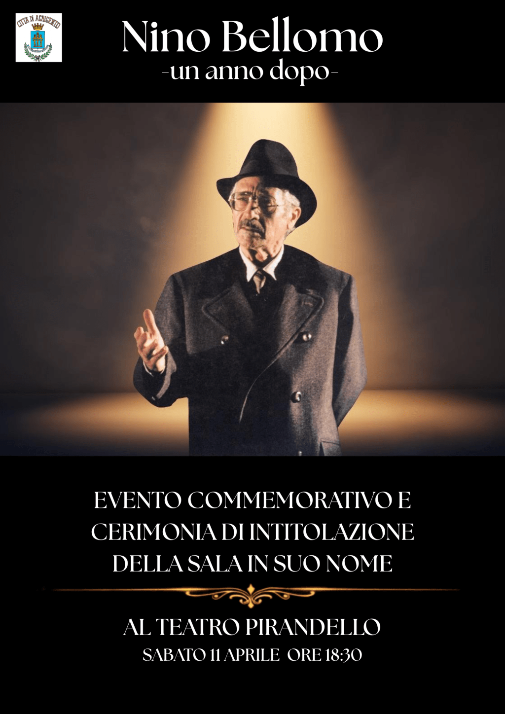 Il sindaco di Agrigento, Francesco Miccichè, sabato 11 aprile, alle ore 18:30, presiederà la cerimonia commemorativa promossa dal Comune in occasione del primo anniversario della scomparsa di Nino Bellomo, nel segno del ricordo. Nel corso dell’evento verrà ufficialmente intitolata una sala del Teatro Pirandello alla sua memoria: un gesto simbolico ma concreto, che restituisce alla città un luogo destinato a custodire nel tempo il valore del suo contributo umano e artistico, e a mantenerne viva la presenza nella vita culturale agrigentina.