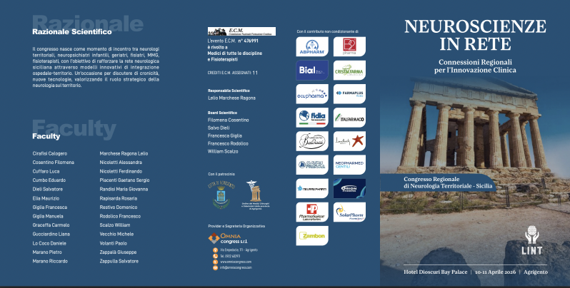 Agrigento si prepara ad accogliere il congresso regionale “Neuroscienze in Rete – Connessioni Regionali per l’Innovazione Clinica”, promosso dalla Lega interdisciplinare per la Neurologia territoriale (Lint), che riunirà neurologi territoriali, neuropsichiatri infantili, geriatri, fisiatri, medici di Medicina generale e fisioterapisti provenienti da tutta la Sicilia.