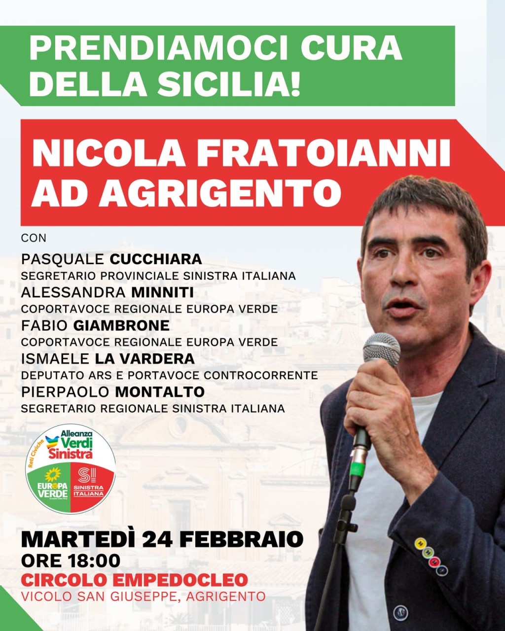 ”Prendiamoci cura della Sicilia”, Nicola Fratoianni ad Agrigento