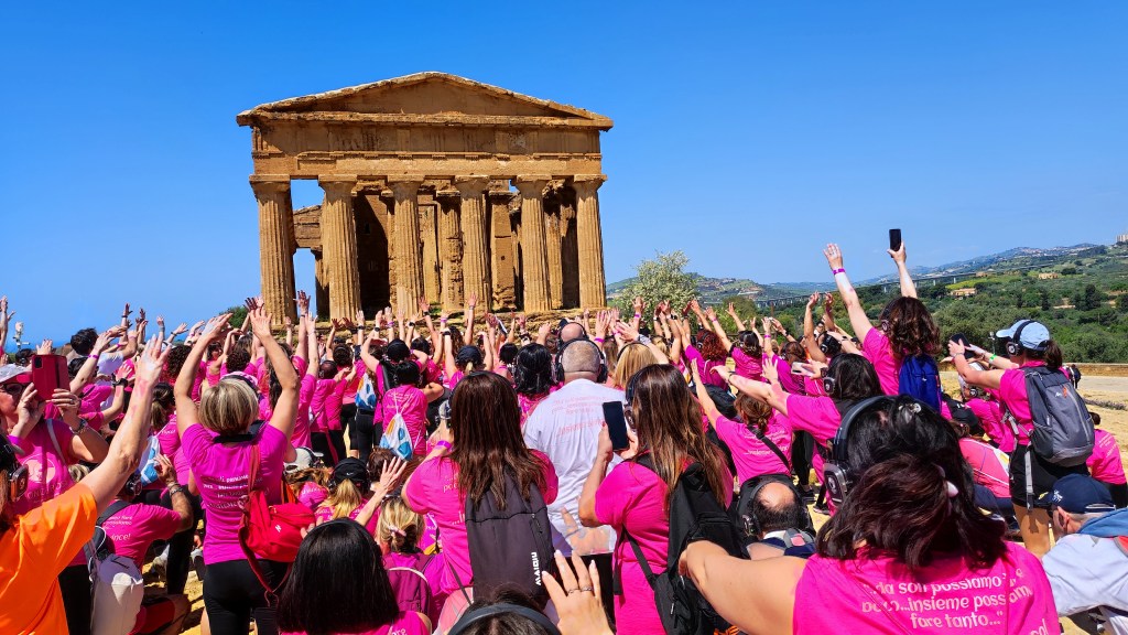 Non erano ancora le 9 di questa mattina quando la Cittadella sanitaria è stata letteralmente travolta dall’energia di Onde Rosa. Donne e uomini di ogni età, perfino giovanissimi, accolti dallo staff dell’associazione, hanno indossato la maglia rosa o bianca e hanno camminato fianco a fianco fino al tempio della Concordia, partecipando ai workout e ascoltando i messaggi degli esperti sulla salute femminile. Altissima la partecipazione, con persone arrivate anche da Sciacca, Ribera, Canicattì e altri comuni della provincia.