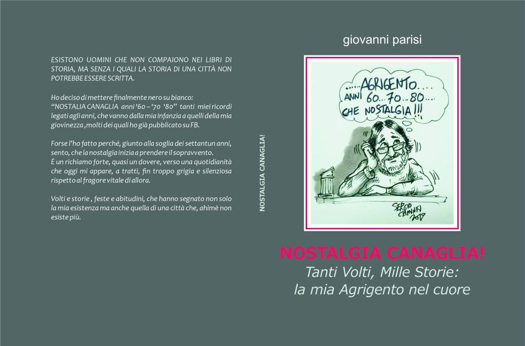 È stato pubblicato il libro “Nostalgia canaglia”, un’opera di 420 pagine scritta da Giovanni Parisi, agrigentino purosangue, vero testimone del nostro tempo, che conduce il lettore in un intenso viaggio a ritroso nel tempo, intrecciando personaggi, storie, aneddoti e ricordi vividi in una narrazione ricca e coinvolgente.
