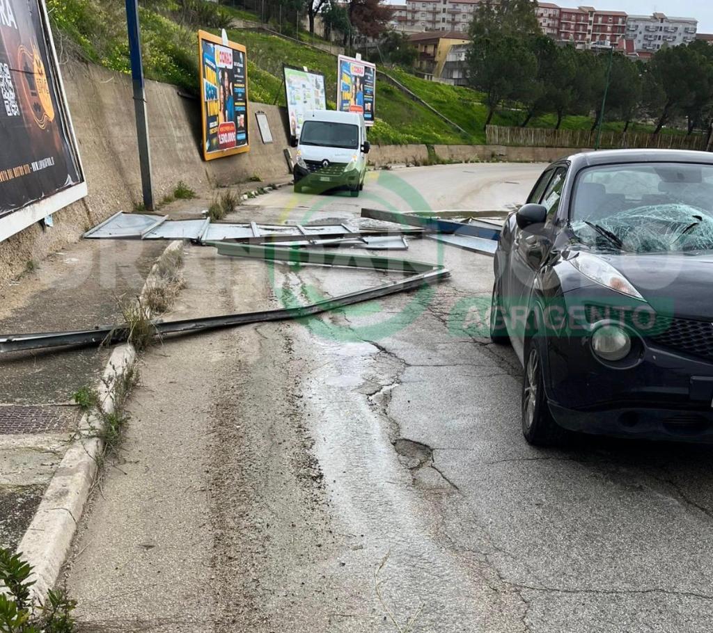 Disagi e momenti di paura a Fontanelle, frazione di Agrigento a causa delle forti raffiche di vento che stanno imperversando nella zona. Un cartellone pubblicitario di grandi dimensioni, sei metri per tre, è stato abbattuto dalla forza del vento, precipitando su un auto in transito. Danni all’autovettura; tanta paura per l’automobilista che fortunatamente non ha riportato ferite. In queste ore il primo cittadino Franco Miccichè ha invitato la cittadinanza a restare a casa e limitare spostamenti non necessari, soprattutto in prossimità di strutture o oggetti potenzialmente pericolosi.