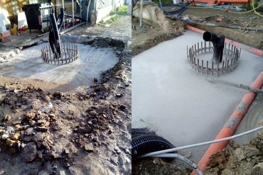 Dopo il completamento delle opere di incantieramento e degli scavi per il passaggio delle linee elettriche a servizio delle torri faro, sono stati realizzati tre plinti di fondazione su quattro, sui quali verranno successivamente impiantati i pali dell’illuminazione.