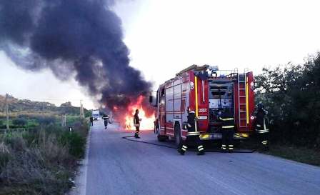 L’auto, condotta da un uomo di 34 anni. G.P. di Partanna, trasportato subito all’ospedale di Castelvetrano, si è incendiata.