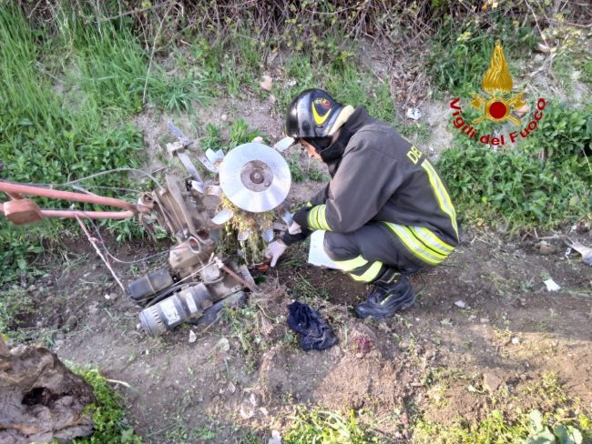 L’intervento congiunto dei vigili del fuoco del distaccamento locale e del personale del 118 si è rivelato delicato e difficoltoso: gli arti inferiori della vittima erano rimasti imprigionati tra gli ingranaggi della macchina.