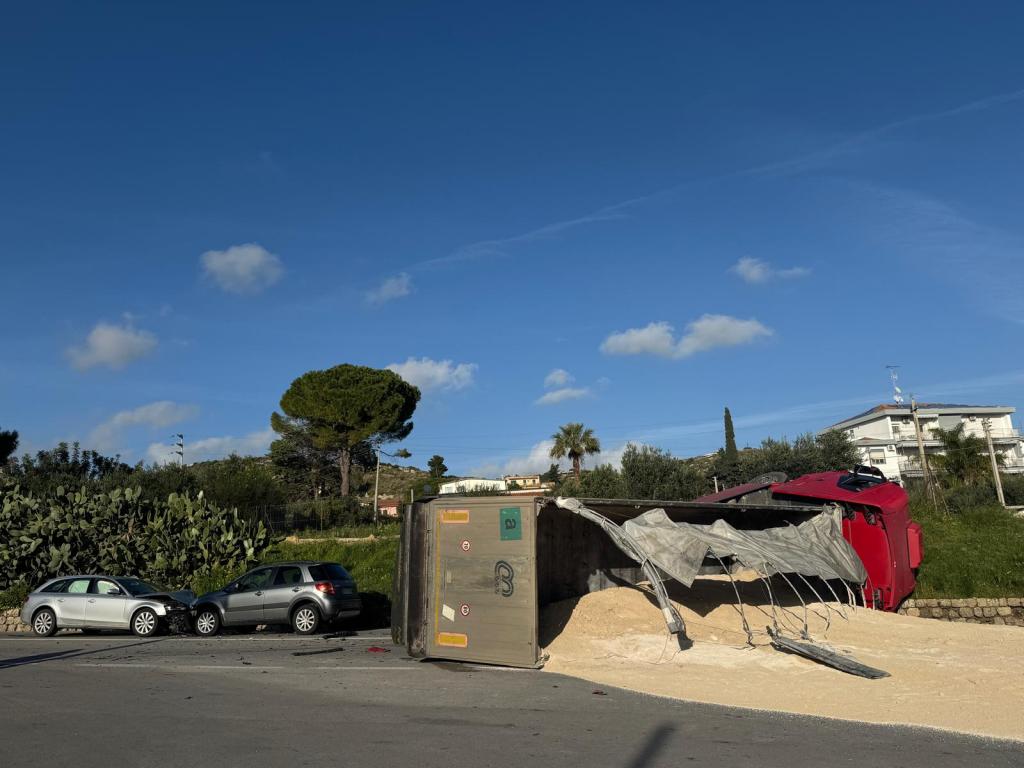 Un camion con un grosso carico di sabbia si è ribaltato lungo la statale 115 nei pressi del bar Albanese a Porto Empedocle. Non è ancora chiara la dinamica dell’incidente dove sono rimaste coinvolte anche due auto. Automobilisti e camionista sono rimasti illesi.