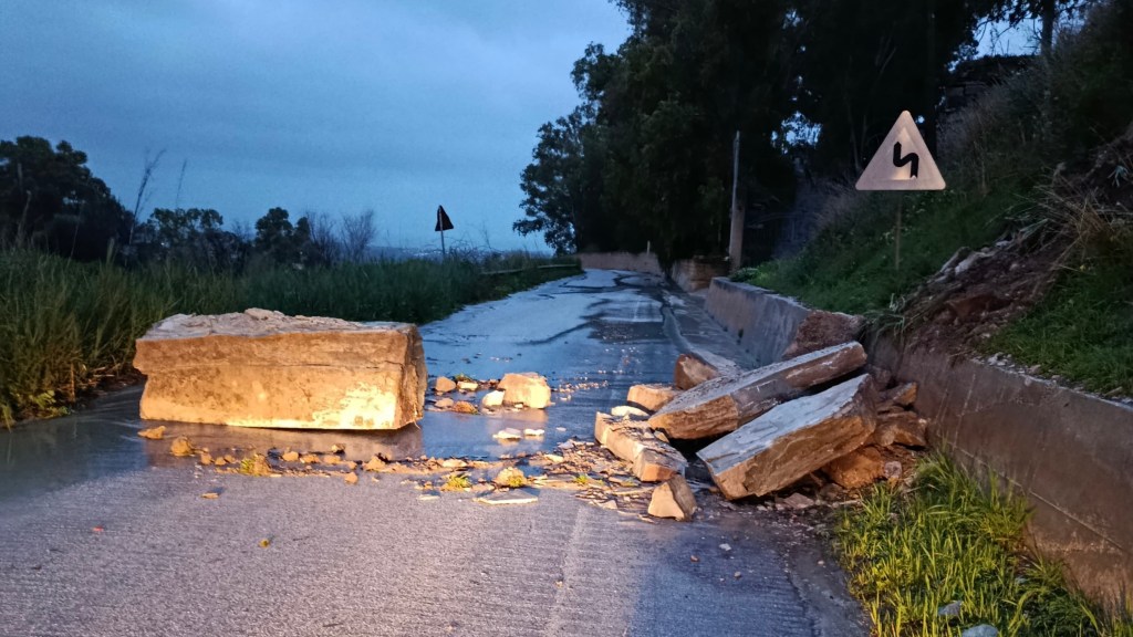 A Racalmuto un grosso masso è caduto in via Fra Diego La Matina, a pochi passi da una villetta, lungo la strada che porta alla Fondazione Leonardo Sciascia. Anche in questo caso – fortunatamente – non si registrano danni.