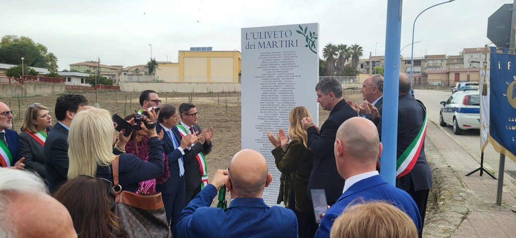 A Campobello di Licata, in concomitanza della consegna di quattro istituti scolastici ristrutturati, messi in sicurezza e adeguati sismicamente, grazie ai finanziamenti del PNRR, è stato inaugurato l’uliveto dei martiri, in via Pascoli, dove sono stati piantati degli alberi di ulivo ognuno in rappresentanza di una vittima innocente di mafia.