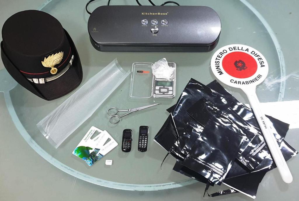 L’operazione ha fornito i riscontri alle ipotesi dei carabinieri che hanno così rinvenuto, abilmente occultate nel sottotetto dell’immobile, 2 grammi di cocaina già confezionata in dosi e un bilancino di precisione, due mini cellulari utilizzati presumibilmente per le comunicazioni con altri pusher, nonché una macchina sottovuoto per sigillare ermeticamente la droga ed occultarla al fiuto dei cani antidroga.