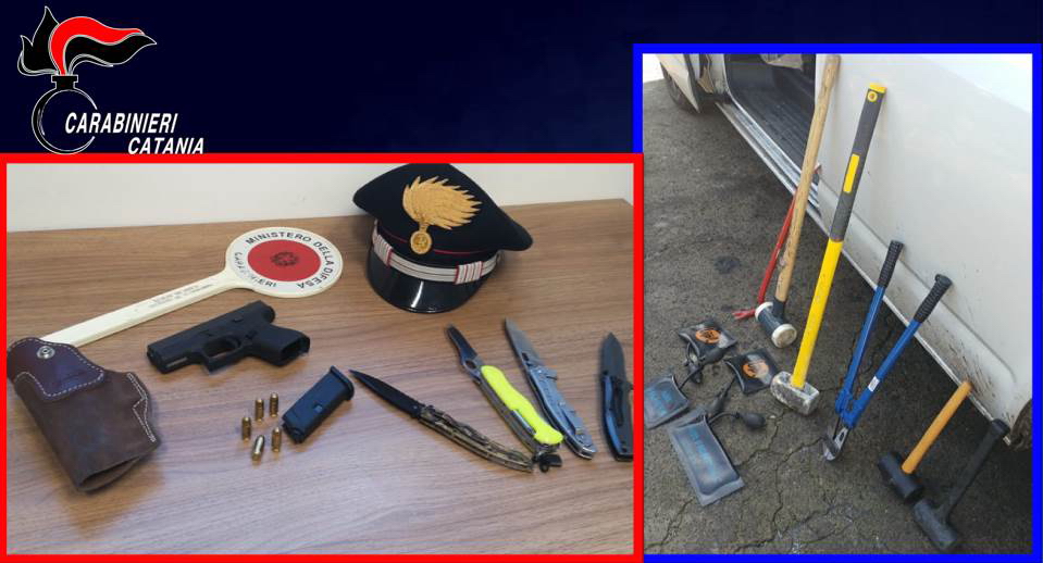 I Carabinieri del Nucleo Radiomobile della Compagnia di Giarre e della Stazione di Fiumefreddo di Sicilia, hanno arrestato lo svizzero Maurizio Cocciolo di 49 anni, il bulgaro Vikiov Valentin TZVETANOV di 52 ed il macedone Useini SANI di 29, tutti residenti in Svizzera, nella flagranza dei reati di furto aggravato in concorso, porto abusivo di armi da fuoco, possesso ingiustificato di chiavi alterate e porto di oggetti atti ad offendere.