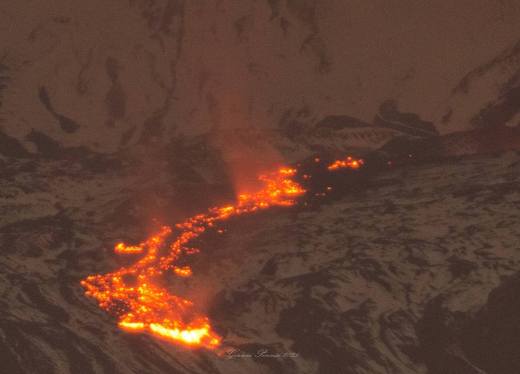 La frattura eruttiva si trova a quota 2.100 metri circa all'interno della Valle e la colata sembra aver raggiunto, attualmente, quota 1.500 metri circa.