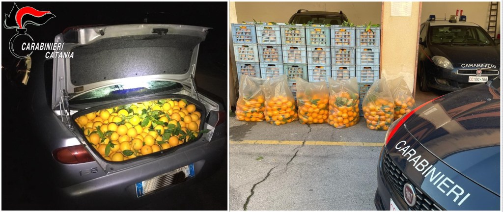 Circa una tonnellata di arance appena rubate e’ stata recuperata la notte scorsa nelle campagne di Paterno’, in contrada Bae’, dai carabinieri. Gli agrumi erano stati caricati su una Alfa Romeo 166.