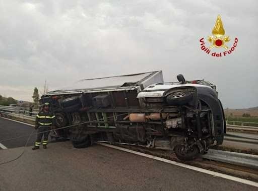 Il tir si è ribaltato su un lato occupando la corsia di sorpasso