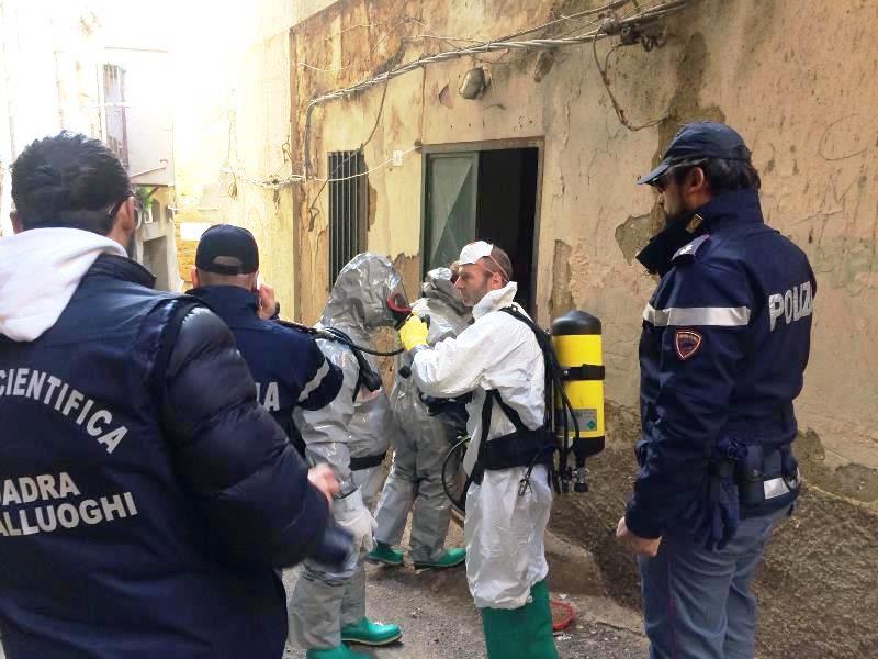 Intanto, Polizia, Vigili del fuoco, Guardia di finanza e Polizia scientifica sono arrivati in forze in via Atenea  e sono intervenuti nella adiacente Via Boccerie per effettuare un controllo ed una bonifica nella casa della donna. Al momento tra cumuli di rifiuti, grazie al fiuto del cane Eschilo, sono stati trovati tre panetti e mezzo panetto di hashish, dei cutter e dei bilancini di precisione.