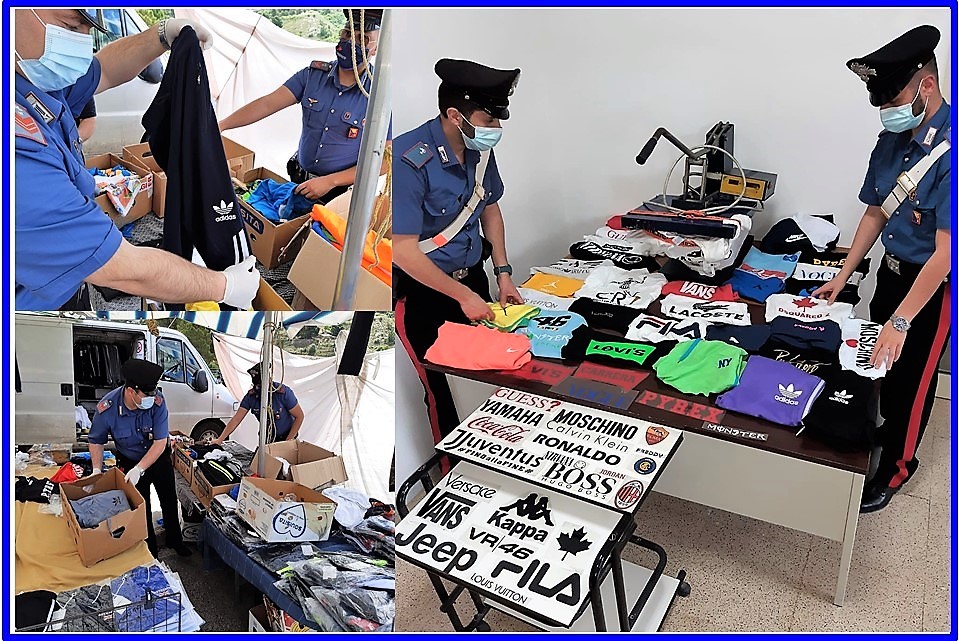 marche nazionali ed estere, nonché 369 capi già contraffatti.