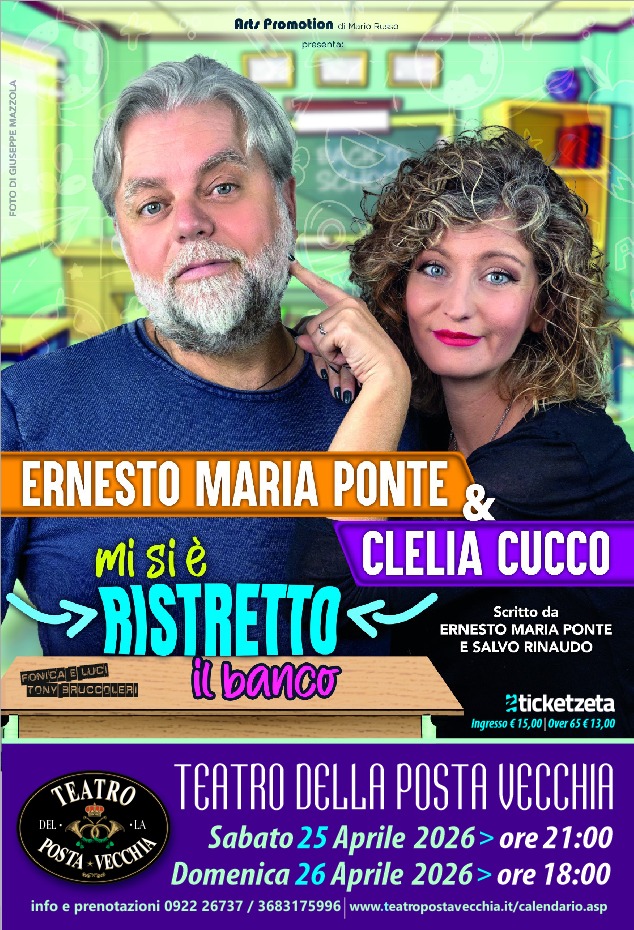 Al teatro della Posta Vecchia arriva “Mi si è ristretto il banco”, la commedia con Ernesto Maria Ponte e Clelia Cucco che sarà in scena sabato 25 aprile alle ore 21 e domenica 26 aprile alle ore 18.