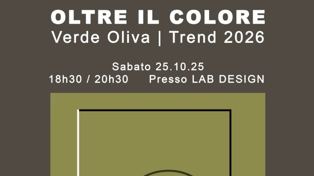 Il primo evento si terrà sabato 25 ottobre 2025 presso lo studio di architettura Lab Design di Danèa Salerno – al Viale della Vittoria 299/305 – e sarà un momento di incontro tra professionisti, aziende e pubblico, con un’esposizione di materiali, campioni e arredi ispirati alla tonalità verde oliva, protagonista delle tendenze 2026.