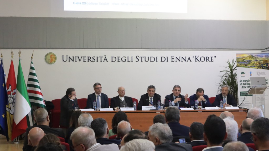 PALERMO (ITALPRESS) – Da Enna si stipula un’alleanza fra Università Kore di Enna, Cesi, Cisl Sicilia, Sicindustria e Anci Sicilia per rilanciare le aree interne siciliane. Questo il primo risultato concreto del convegno organizzato dalla Cesi, dalla Cisl Sicilia e dall‘Università Kore di Enna, svoltasi il 15 aprile nell’ Aula “Napoleone Colajanni”, all’Università Kore di Enna. L’iniziativa è stato il primo momento pubblico di confronto previsto nell’ambito del protocollo d’intesa sottoscritto a gennaio da Cesi, Cisl Sicilia e Università Kore di Enna, finalizzato a rafforzare il ruolo strategico delle aree interne dell’Isola e a promuoverne il rilancio sociale, economico e culturale. Hanno portato i saluti istituzionali: Cataldo Salerno, presidente Università Kore di Enna, Antonino Raspanti, presidente Conferenza Episcopale Siciliana, Maurizio Antonello Dipietro, sindaco di Enna.