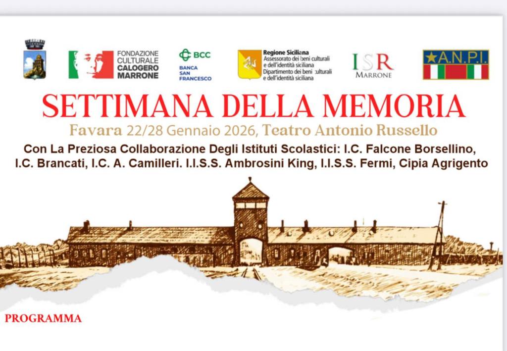Dopo un intenso lavoro di programmazione condivisa, prende forma a Favara la Settimana della Memoria 2026, promossa dalla Fondazione Calogero Marrone in collaborazione con ANPI, Comune di Favara e con il coinvolgimento attivo di tutte le scuole del territorio. Nonostante le difficoltà legate alla chiusura degli istituti scolastici per l’emergenza ciclone, il programma si presenta ricco e articolato. Sono previste proiezioni cinematografiche, rappresentazioni teatrali, incontri formativi, mostre fotografiche, docufilm e momenti di confronto, con il contributo degli studenti di ogni ordine e grado. Centrale, come sempre, la giornata del 27 gennaio, dedicata alla riflessione e alla memoria della Shoah.