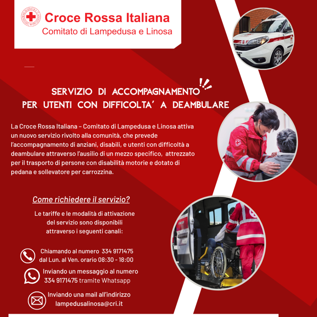 La Croce Rossa Italiana – Comitato di Lampedusa e Linosa rafforza il proprio impegno sul territorio attivando un servizio di accompagnamento dedicato ad anziani, persone con disabilità e utenti con difficoltà a deambulare.