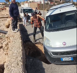 Ancora danni del maltempo. A Lampedusa una voragine si è improvvisamente aperta sulla strada che del Molo Favarolo. Questa mattina un furgoncino, guidato da un uomo, è rimasto incastrato nella buca con la ruota anteriore destra, ma fortunatamente il conducente è rimasto illeso. La polizia municipale ha chiuso il tratto di strada interessato dal problema, dopo aver rimosso l’auto. Sul luogo presente anche il vicesindaco Attilio Lucia.