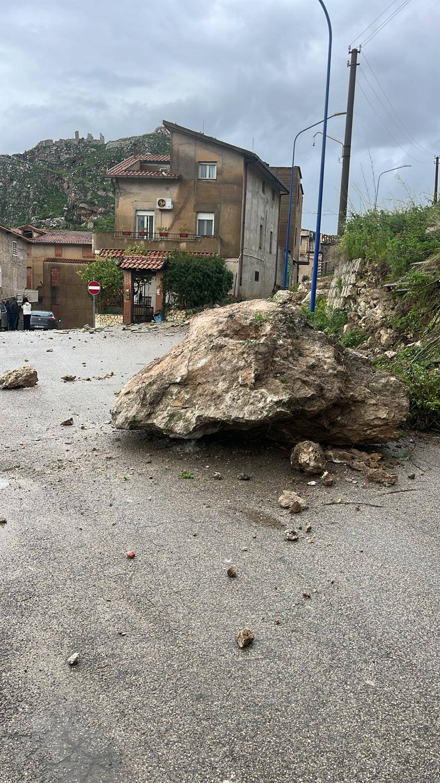 Momenti di apprensione a Montallegro lungo la strada comunale, in via Canale all’incrocio con via Menfi, dove si è verificato un crollo improvviso con il distacco di grossi massi e detriti dal costone roccioso sovrastante la carreggiata.
