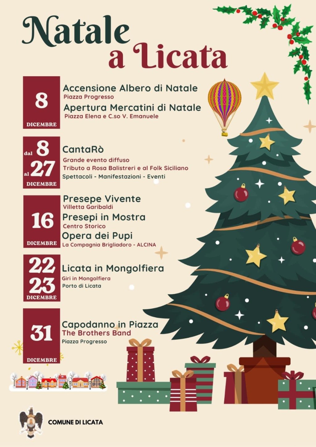 Un’atmosfera magica e festosa avvolgerà la Città di Licata dall’ 8 al 31 dicembre 2023, grazie a un ricco cartellone di eventi predisposto e coordinato dall’Amministrazione comunale guidata dal sindaco Angelo Balsamo.Il “Natale a Licata” sarà caratterizzato dai tradizionali mercatini, luminarie, musica, spettacoli e tanti altri eventi capaci di ricreare la magia del Natale nelle piazze e nelle strade che contribuiranno, attraverso la valorizzazione delle tradizioni locali, a promuovere l’identità e l’economia locale.