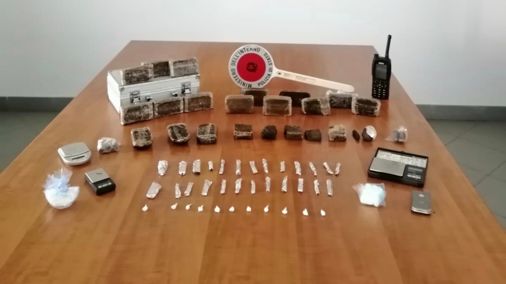 Grazie alla fondamentale collaborazione della Squadra Cinofili e allo spiccato fiuto del cane Ulla gli agenti sono riusciti, inoltre, ad individuare, in quel vano, due sacchetti occultati contenente altra sostanza stupefacente verosimilmente hashish, in particolare 18 panetti del peso di circa 100 gr cadauno. Nel corso della perquisizione domiciliare i poliziotti hanno altresì rinvenuto 5 bilancini di precisione, un tagliere in legno e un coltello, presumibilmente utilizzati per il confezionamento della sostanza.