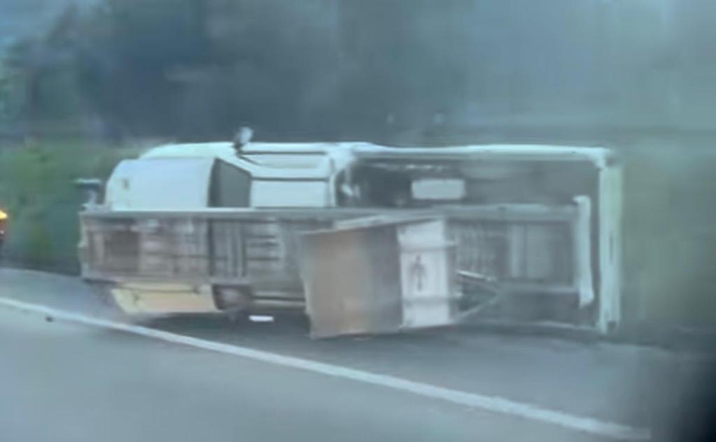 Maltempo, forte vento ribalta furgone con scala per traslochi