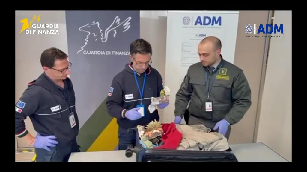 Nel corso di due distinti controlli doganali sono stati intercettati due turisti italiani che, provenienti dalle Mauritius e dalle Maldive, avevano nascosto nei propri bagagli coralli, rientranti nell’ordine della “scleractinia”, specie protetta dalla Convenzione Cites. I finanzieri hanno notato come alcuni degli esemplari presentassero caratteristiche quali odore e colorazione tali da far ritenere una recente rimozione dalla barriera corallina.
