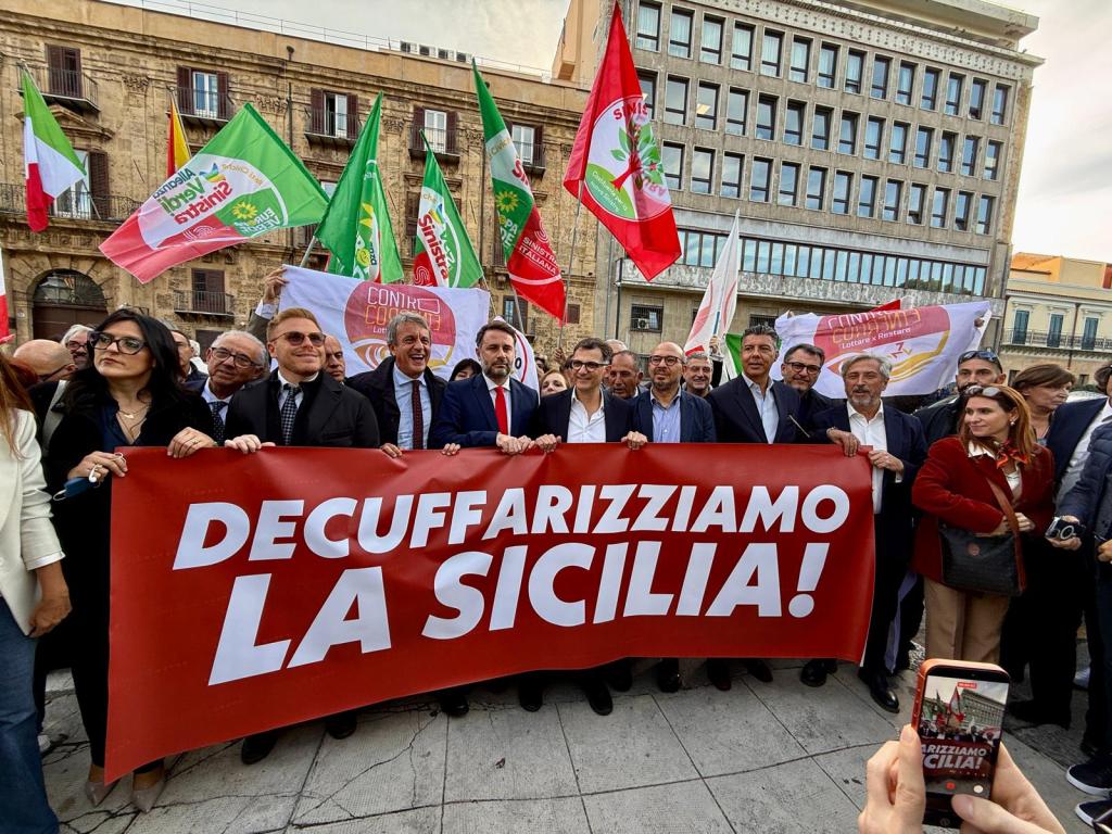Sit-in delle forze d’opposizione davanti la sede della Regione: “Schifani dimettiti”