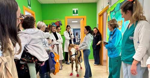Un pony consegna regali ai piccoli pazienti del Cervello