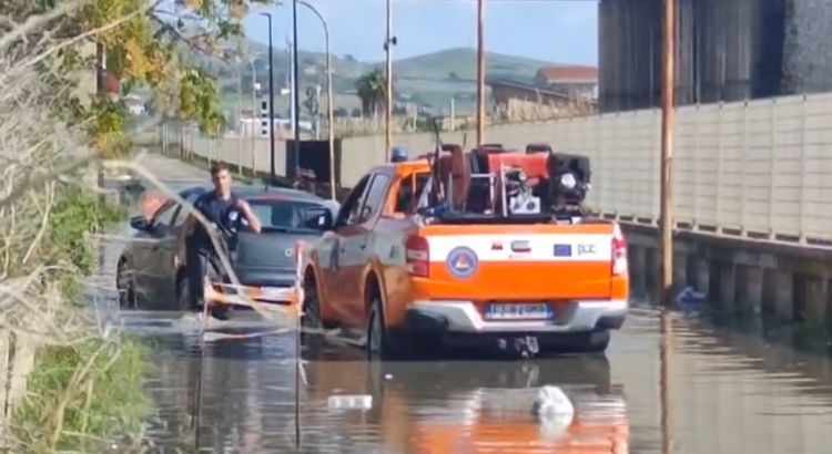 In via Mauro De Mauro i volontari di Guardia Costiera Ausiliaria di Licata e Falchi di Palma di Montechiaro, hanno soccorso un automobilista rimasto bloccato nella strada invasa dall’acqua.