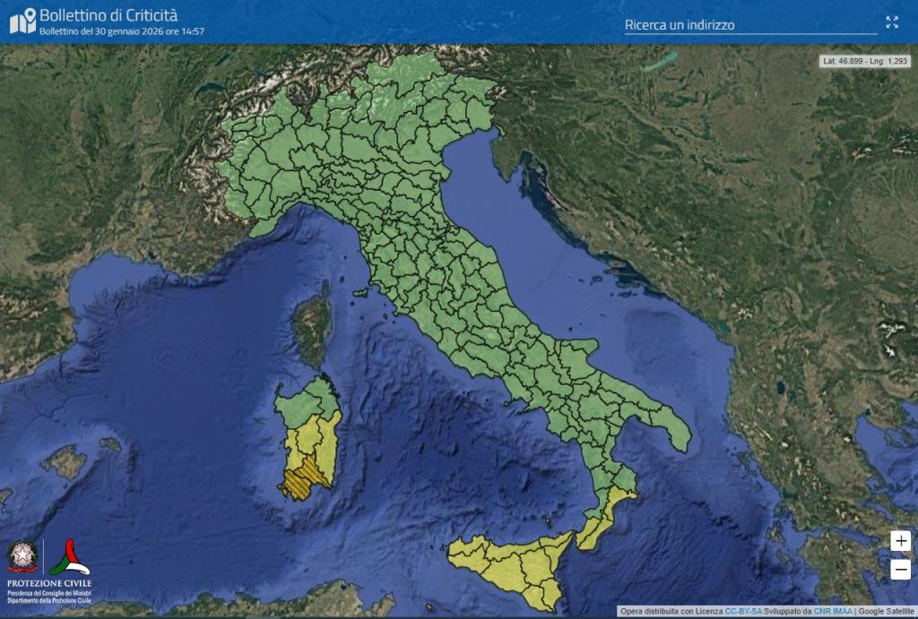 Nella giornata di sabato 31 Gennaio si assisterà ad una nuova fase di maltempo causato dall’approfondimento di un minimo depressionario fra Sicilia e Sardegna che apporterà un generale peggioramento del tempo.