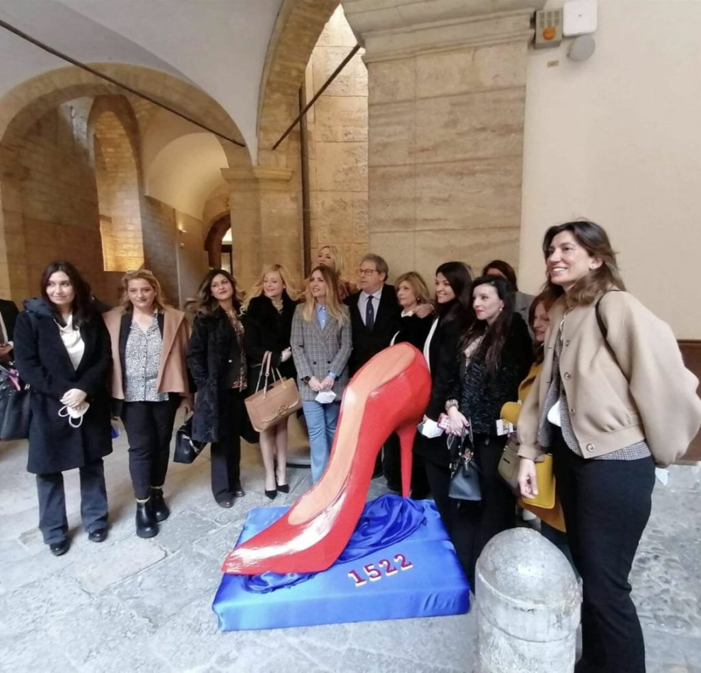 Per quest’ultimo aspetto il riferimento è al numero verde collocato a fianco della scarpa, 1522, rivolto a tutte coloro che dopo la denuncia hanno bisogno di assistenza, in modo da garantire protezione e strumenti che favoriscano un reinserimento sociale in tranquillità. “Grazie a questo numero verde siamo state in grado di salvare tantissime vite durante la pandemia -, spiega Polidori, – abbiamo voluto che venisse inserito sugli scontrini delle farmacie cosicchè, dopo che le donne fossero uscite di casa con una scusa, si mettessero in contatto con noi per non dover più tornare dai loro aguzzini. In più abbiamo chiesto al governo che il 1522 venisse fatto passare anche durante i telegiornali, in modo che l’informazione arrivasse anche alle donne straniere”.