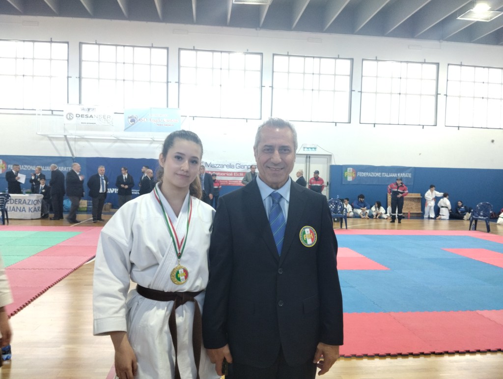 Il 30 novembre a Priolo Gargallo si è svolto il campionato interregionale FIK di Karate con circa 250 partecipanti suddivisi in varie categorie. Simona Greco di soli 14 anni allieva del maestro Michele Nicosia di Palma di Montechiaro si è classificata al primo posto nella gara stile Shotokan conquistando la medaglia d’oro. Hanno conquistato l’ oro anche gli atleti Michele Amico, Giuseppe Curatolo e Marta Curatolo tutti allievi del maestro Nicosia. La campionessa Palmese Simona Greco ha ringraziato il maestro Michele Nicosia e la maestra Maria Russica per averle insegnato oltre alla disciplina del karate, la determinazione l’autocontrollo il rispetto e l’umiltà.