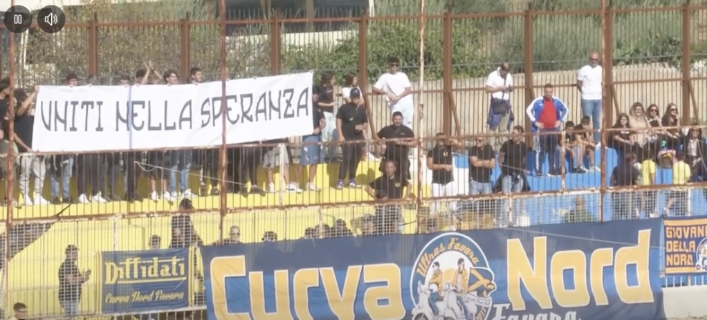 Prima del match gli ultras del Favara hanno esposto uno striscione per Marianna Bello (Uniti nella speranza), la trentottenne ormai dispersa dallo scorso 1 ottobre in seguito all’alluvione che ha colpito il popoloso centro dell’agrigentino.