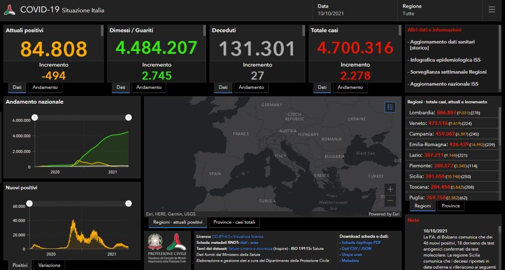 Covid, 2.278 nuovi casi e 27 decessi nelle ultime 24 ore