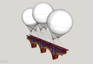 Per il Ponte Farnese, Grossetete si è ispirato al progetto che nel XVI secolo venne commissionato a Michelangelo da Papa Paolo III con l’intento di creare un collegamento tra Palazzo Farnese e i giardini che la famiglia possedeva sull’altra sponda del Tevere, dove oggi sorge Villa Farnesina, sede dell’Accademia dei Lincei. Abbandonato alla morte di Papa Paolo III, il progetto rivive oggi con una modalita artistica basata sul principio della partecipazione collettiva, riprendendo i tratti del progetto di Michelangelo di cui l’unico segno esistente è l’arco dei Farnese di via Giulia.