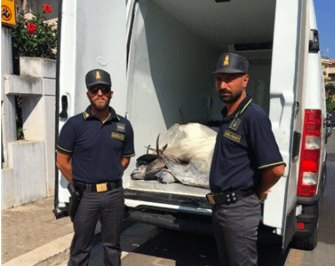 Gli esemplari di Tonno Rosso (“Thonnus Thynnus”) di cui, in questo periodo, e’ vietata la pesca, fruttano ingenti guadagni sul mercato nero. I militari hanno contestato al responsabile il mancato rispetto delle normative europee sulla rintracciabilita’ dei prodotti alimentari, ovvero l’assenza del modello B.C.D. (Bluefin Tuna Catch Document) validato dall’Autorita’ Marittima, documento con cui viene ricostruita e garantita la tracciabilita’.