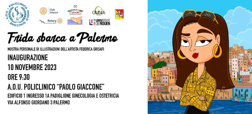 “Frida sbarca a Palermo”: domani mattina alle 9.30 presso l’unità operativa di Ostetricia e Ginecologia del Policlinico sarà inaugurata la mostra personale di illustrazioni dell’artista di Sciacca Federica Grisafi.