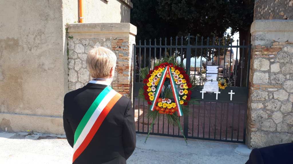 Il sindaco di Agrigento, Lillo Firetto, ha deposto una corona di fiori dinanzi al cancello dei quattro cimiteri della città.