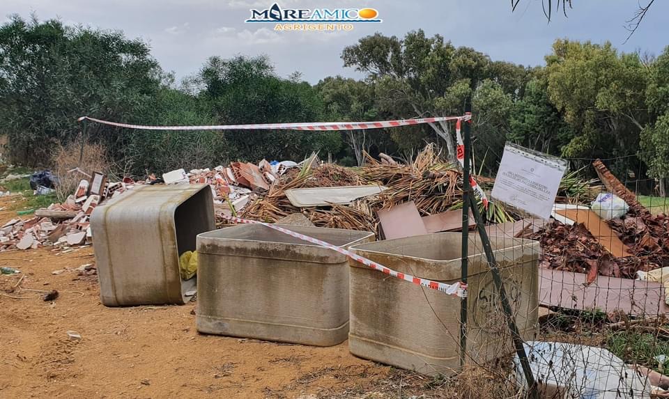 Nei giorni scorsi era stata l’associazione ambientalista Mareamico a segnalare lo stato di degrado della zona. Sfabbriciti, eternit, resti di giardinaggio e rifiuti vari; una vera e propria discarica a cielo a pochi passi dal mare e in una zona che fa parte del Parco della Valle dei Templi.