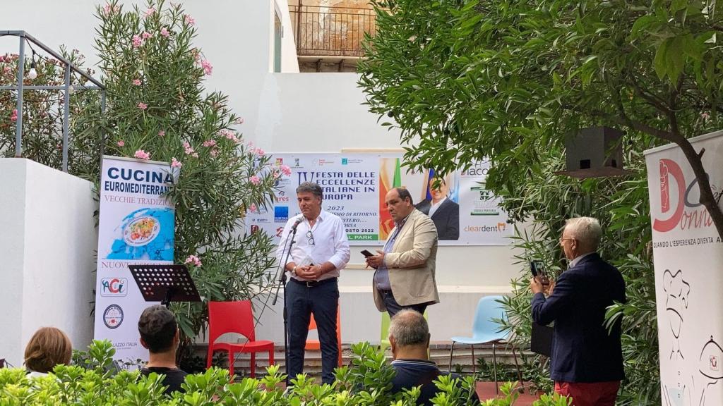 Si è svolta nello splendido giardino della Farm Cultural Park di Favara la prima giornata della quarta Festa delle Eccellenze Italiane in Europa. Durante la serata si è discusso delle potenzialità del territorio, di risorse e dell’importanza della certificazione dei prodotti “Made in Italy”. Durante la serata è stata consegnata la targa alla memoria a Calogero “Lillo” Bellomo, e sono state consegnate le targhe alle eccellenze a Gianni Calderone, presidente Comites Romania, a Vito Ficara Presidente Italiani Lippstadt e a Michele Bruccoleri.