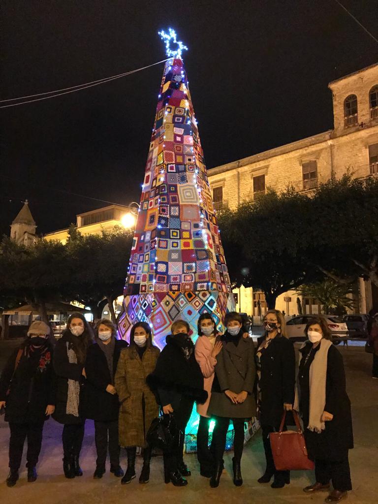 Acceso l’albero di Natale di piazza Cavour a Favara in presenza del Sindaco Anna Alba, dell’assessore Miriam Mignemi, Giuseppina Dionisi , Lilia Alba, Rosanna Saieva, Antonella Morreale , Mariella Tragna e Irini Antonopoulou, le donne che si sono occupate oltre che di realizzare alcuni dei circa 700 centrini che rivestono l’albero anche e soprattutto dell’assemblaggio completo di tutti i centrini.