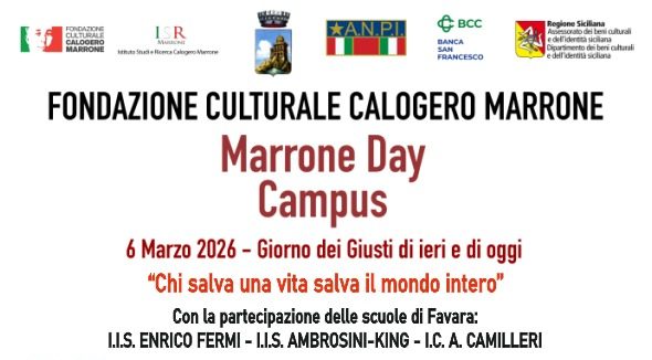 Anche quest’anno per la giornata dei giusti ( 6 marzo 2026 ) la fondazione marrone ha pensato ad un progetto articolato a favore degli studenti delle scuole superiori di favara , il marrone day, che si svolgerà presso la sala del collare del castello chiaramonte a partire dalle ore 8.30 , con autorità, docenti ed esperti di alto profilo artistico e culturale, che , con laboratori , riflessioni e dibattiti, favoriranno l’emersione di concetti , idee e desideri , in una prospettiva storico-artistico -sociale .