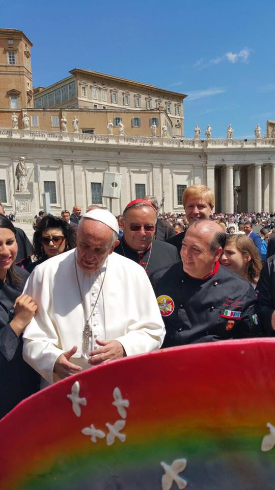 “Abbiamo donato al Santo Padre il carretto siciliano di pasta di mandorle che trasporta la barca dei migranti – ha detto il sindaco Lillo Firetto. – Un segno da Agrigento, porta del mediterraneo!”.