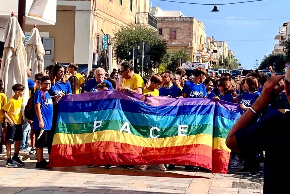 “La pace va per-corsa. Dobbiamo correre insieme verso la pace, sentire l’urgenza di raggiungerla. La pace è un cammino fatto anche di ostacoli e salite, ma che non può fermarsi di fronte a quelli. Ecco il perché di questa staffetta: una corsa collettiva per sottolineare la responsabilità di ognuno nel costruire la pace. La pace si costruisce prima di tutto nel pensiero. Occorre pensarla possibile come alternativa concreta alla violenza, strada praticabile e non semplice fantasia di menti ingenue”. Così il fondatore di Libera Luigi Ciotti parlando questa mattina ai ragazzi di Lampedusa riuniti in via Roma per la staffetta della pace ‘Libera la Natura’. Gli studenti si sono passati tra le mani la bandiera della pace insieme a tre staffettisti di eccezione: Luigi Ciotti, presidente di Libera, il sindaco di Lampedusa e Linosa Filippo Mannino e Lucilla Andreucci responsabile nazionale Libera Sport.